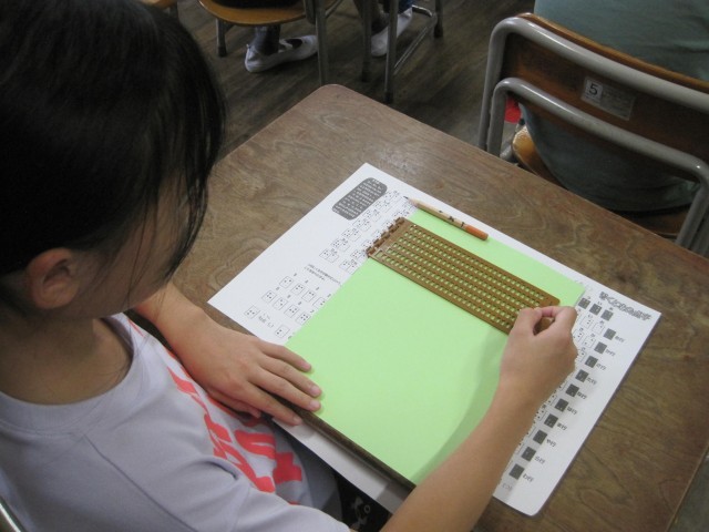 まず、点字について、解説をしていただいたあと、実際に1人1人が点字体験を行いました。