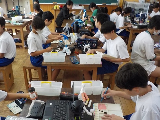 2組は図工「未来の自分」です。なりたい自分、続けたいこと、やってみたいことなどを立体作品として表現します。