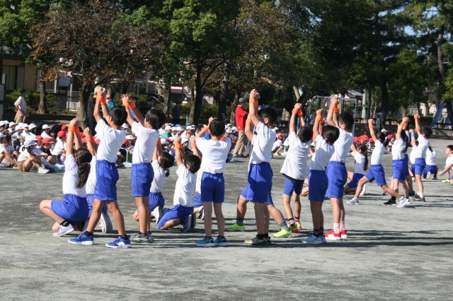 秋晴れの空の下、運動会の表現運動お披露目会を行いました。