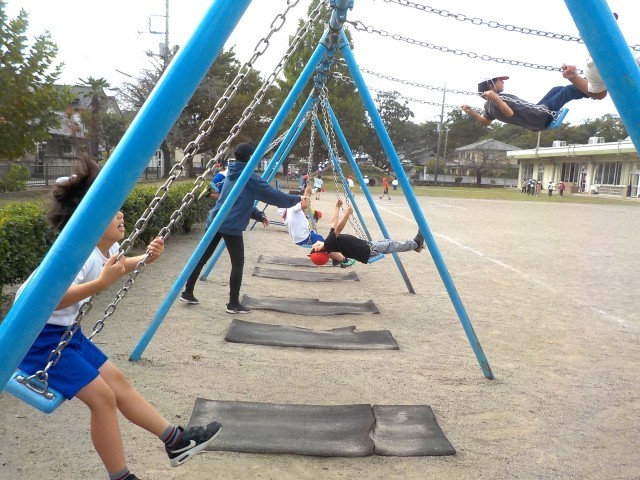 運動会の熱狂と興奮が去って、昼休みの校庭は穏やかな空気が流れました。