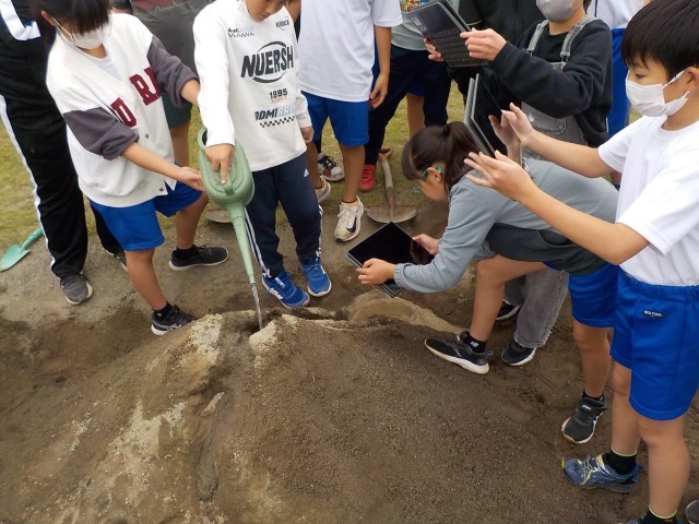 今日は砂場で実験をしました。