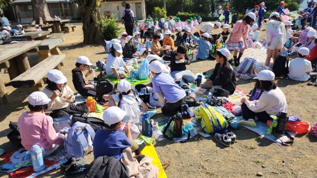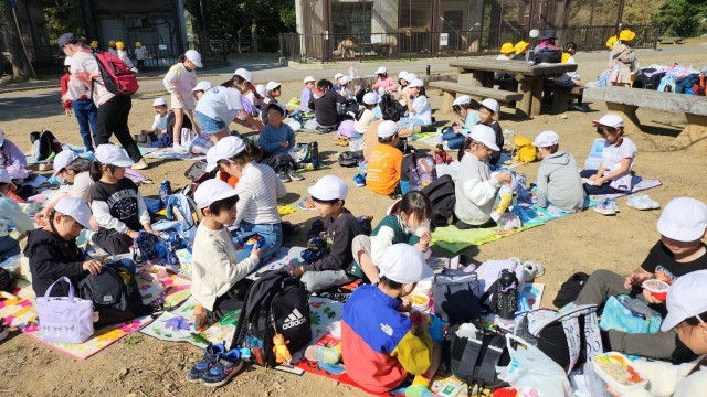 2年遠足② 公開日 2025/10/30 更新日 2025/10/30 学年行事・学校行事 動物を見た後は、おたのしみのお弁当タイムです。グループでまとまって仲良く食べます。今日は、15校以上来場していて、大変混んでいます。