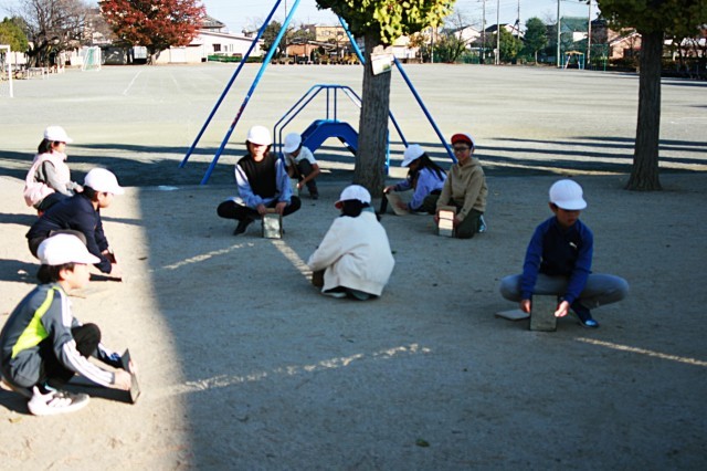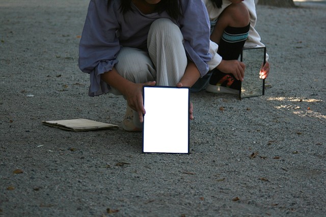 今日は、はね返した日光を日陰の地面にはわせ、日光の進み方を調べました。