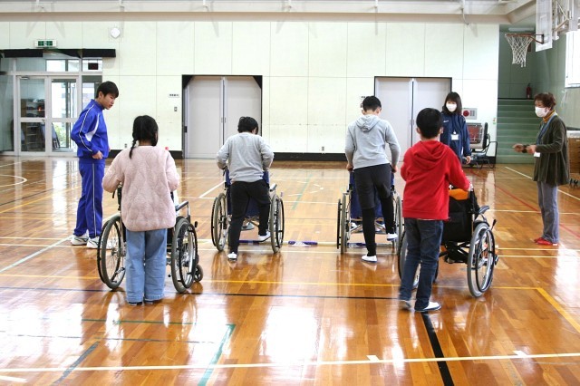 今日は総合的な学習の授業で車いすの体験をしました。