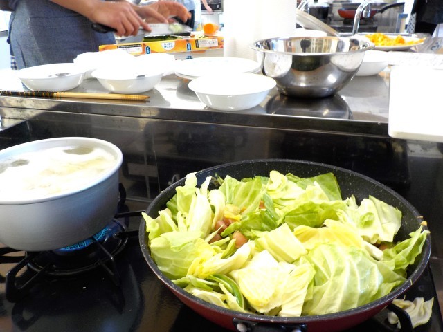 煮る、焼く、炒めるなど、これまで学習したことをいろいろ使って、グループごとに相談して決めたメニューをつくりました。