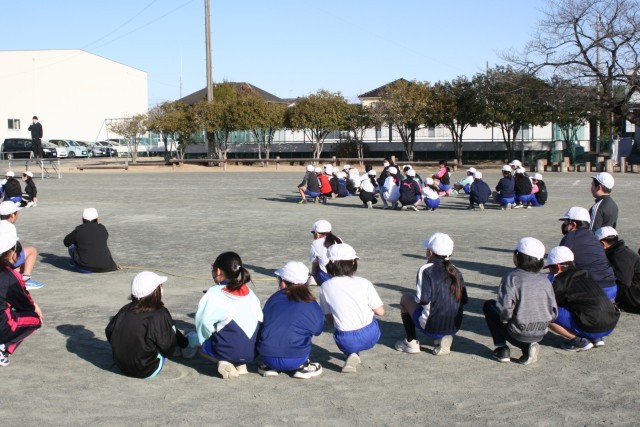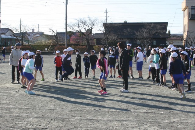 目標回数に向かってクラスが一つになり、校庭には元気な掛け声と笑顔があふれていました。