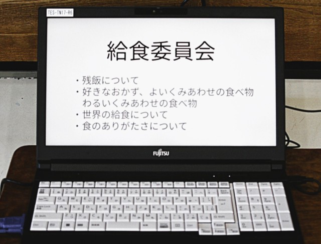 残飯を減らす工夫や、好きなおかず、よい・わるい食べ物の組み合わせ、世界の給食、食のありがたさについて、資料を工夫し分かりやすく伝えました。