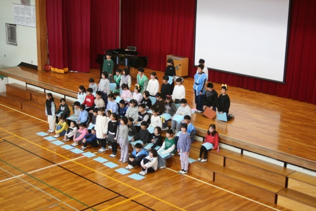 写真は、3年生の発表、4年生の発表、5年生の発表です。