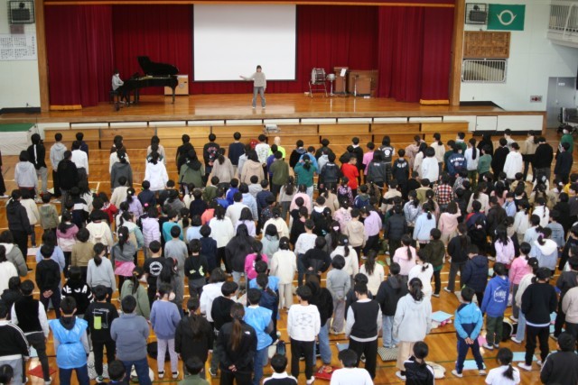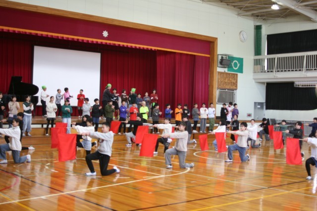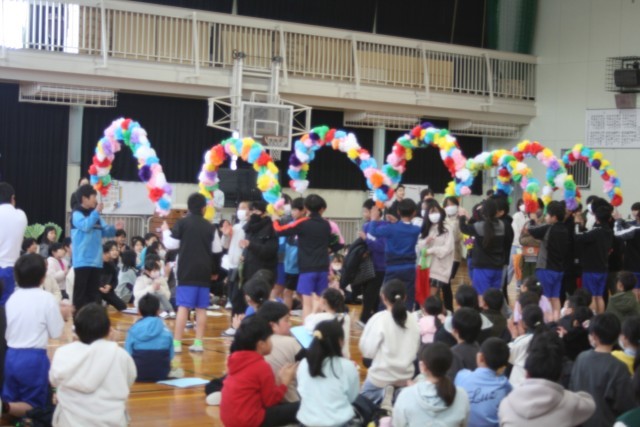 写真は、6年生の発表、全校合唱、6年生の退場です。