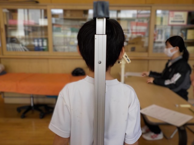 発育測定 どのくらい伸びたかな? 公開日 2026/04/09 更新日 2026/04/09 学校・学年行事 4月9日。発育測定を行っています。心身ともに伸び盛りの子どもたち。計測台に立つと、思わず少し背伸びをしたくなるようです。