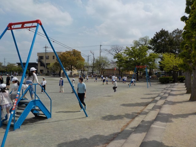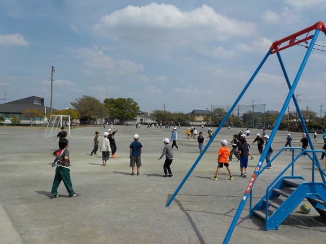 4月14日。今日は気持ちのよい風が吹いて過ごしやすいこともあって、たくさんの子どもたちが校庭で遊んでいました。ドッヂボールやターザンロープ、サッカー、そして4年生のグループは「はないちもんめ」で楽しんでいました。汗をかきながら笑顔で遊んでいる様子を見ていると幸せな気持ちになります。