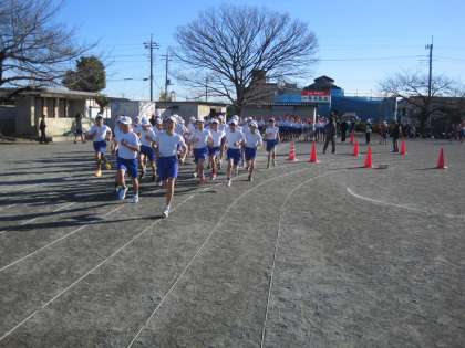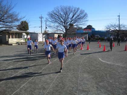 持久走、頑張りました! 公開日 2014/12/17 更新日 2014/12/17 学校・学年行事 12月17日の1校時に、5・6年生の持久走記録会が行われました。インフルエンザ流行のために校内持久走大会が中止になり、5・6年生の記録会が昨日行われる予定でしたが、悪天候のために今日の実施となりました。6年生は、玉村小学校最後の持久走を、それぞれが悔いなく走りきることができたました。寒い中でしたが、沿道でご声援を下さった皆様、ありがとうございました。 6年
