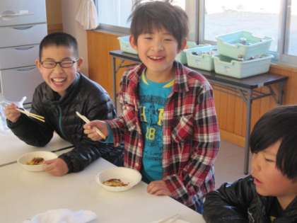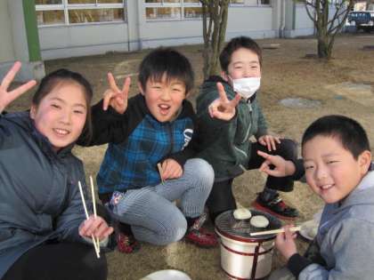 総合の時間に、ぐんまの名物を実際に食べてみようということで、みんなで焼きまんじゅうを焼いて食べました。七輪で焼いて甘い味噌だれをつけて、辺りに甘くて香ばしい香りが広がっていました。子どもたちも、焼きあがる瞬間が待ち遠しい様子で、微妙な焼き加減を楽しんでいました。子どもたちもとても満足そうでした♪