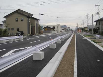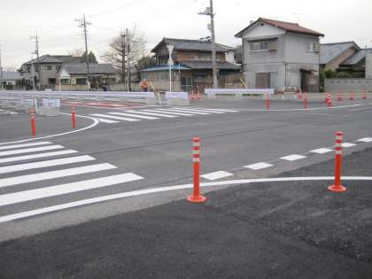 斎田上之手の一部開通に伴い、旧354号線の南で斎田上之手線の西に済んでいる児童の皆さんは、旗振りか所の変更が済むまで八幡様の押しボタン信号を通って登下校してください。