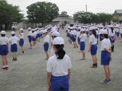 5月20日の朝、体育集会が行われました。今日は前回見学だった1年生も参加し、体操の隊形や行進の仕方を確認しました。初めての1年生も前回しっかり見学できたので、戸惑う様子もなく、上級生に合わせてしっかり動くことができました。また6年生はすばやく体操の隊形になったり、指先までしっかり意識した行進ができ、全校児童のよいお手本となってくれました。
