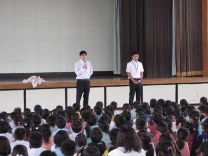 その後教育実習生の紹介があり、2人の実習生が元気よくあいさつしました。