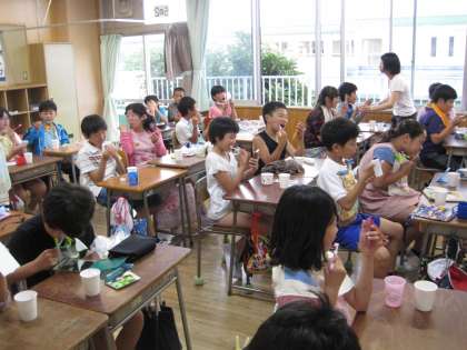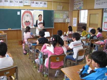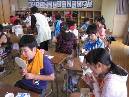 6月19日の午後、3年生と5年生の学級で歯科衛生指導が行われました。各学級で歯科衛生士の方から、しっかりかむことの大切さや上手に歯をみがく方法などをわかりやすく教えていただきました。最後には児童一人一人がプラークテストをして、みがき残しやすい場所を鏡を見ながら確認しました。多くの児童がみがき残しの多さに驚いている様子でした。