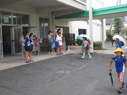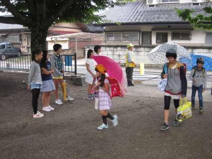 今日はあいにくの雨でしたが、各委員会の児童はかさをさしながら、登校してくる児童を元気なあいさつで迎えることができました。