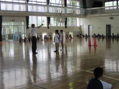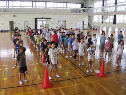 7月29日に5年生は8時半に登校し、体育館で臨海学校前の最後の集会を行いました。集会の中では一緒に行っていただく教頭先生から大切なことをお話ししていただいたり、玉村小の校歌や入校式、退校式、キャンプファイヤーなどたくさんのことを練習しました。