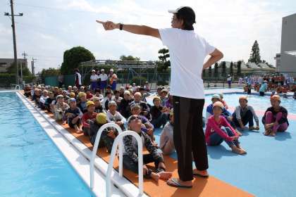 9月4日の5,6校時に6年生が着衣水泳を行いました。はじめに担当の先生から細かい注意を聞き、その後、実際に服を着たままプールに入りました。