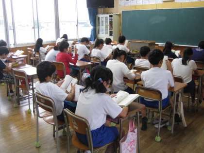 朝読書 公開日 2015/09/08 更新日 2015/09/08 お知らせ 9月8日の朝は読書の時間でした。5年生の教室では児童が図書室で借りた本や自分の家から持ってきた小説などを静かに読んでいました。