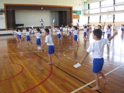運動会の練習 公開日 2015/09/11 更新日 2015/09/11 お知らせ 9月11日の2校時に3年生が体育館で運動会の練習を行いました。3年生は「よさこい よっちょれ」の演技を発表しますが、体育館に「よさこい よさこい!」「どっこししょ どっこいしょ!」の元気な声が響いていました。 運動会当日も3年生の元気いっぱいの演技にご期待ください。 3年