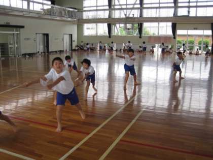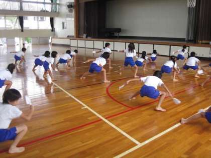 3年生は体育館で表現活動の練習を行いました。体育館に3年生の「よさこい よさこい!」「どっこいしょ どっこいしょ!」の元気な声が響いていました。