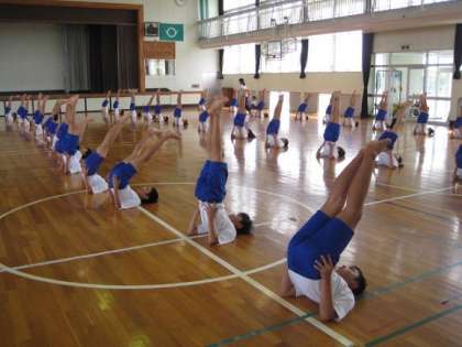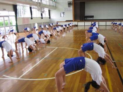 9月16日の3校時に5年生が体育館で組み体操の練習を行いました。基本である一人技の完成度を高めるために、指先を伸ばす、姿勢をよくするなど細かい動きにも注意して、何度もくりかえし練習しました。