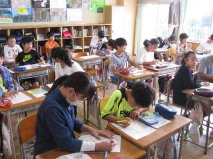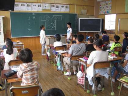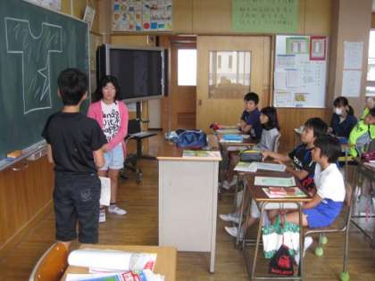 9月18日の5年生の英語の授業の様子です。先週描いた自分のオリジナルのTシャツをもとに、ペアで[What colour do you like?][What shape do you like?][How many 〜?]などの質問に対して[I like blue. I like stars.]などと答える活動を中心に行いました。クラスの前で発表するときも積極的に挙手をし、進んで挑戦することができました。