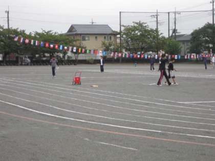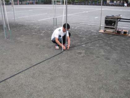 9月26日の早朝から準備を始め、7時半にはほぼ会場ができあがりました。天気は曇りですが、予定通り運動会を実施します。