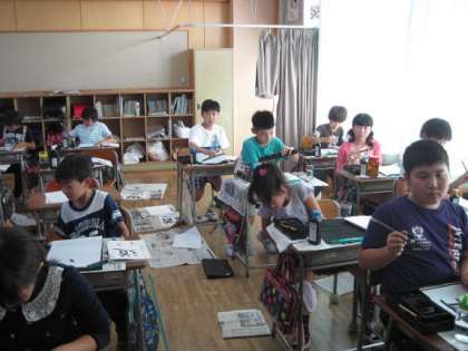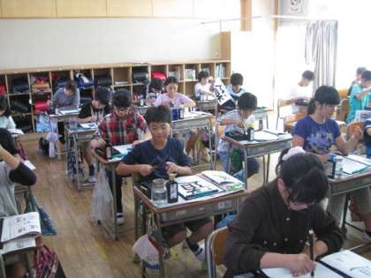 10月6日の5校時に5年生のクラスで習字の授業が行われました。今月末に玉村町の総合芸術展が開かれるので、全員で「道」を書きました。