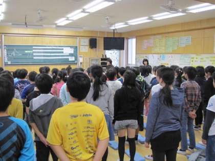 11月17日の6校時に5年生が音楽室で玉小音楽祭に向けて合同練習をしました。初めて学年全体で合わせたので、はじめのうちは歌声も高音と低音が合いませんでした。その後、CDを聞いて強弱をつけることの大切さに気づき、気持ちを込めて歌えるようになってきました。