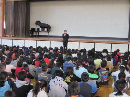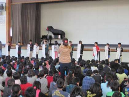 12月9日の朝、体育館で人権朝礼が行われました。はじめに、体育館にきてしっかり待っていられた3年生の紹介があり、全校で拍手を送りました。