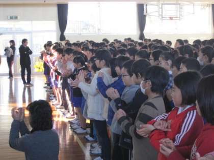 最後には一人一人の世界で一つだけのきれいなお花が体育館にたくさん咲き、とてもさわやかな音楽集会となりました。