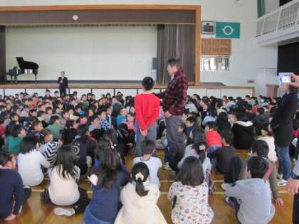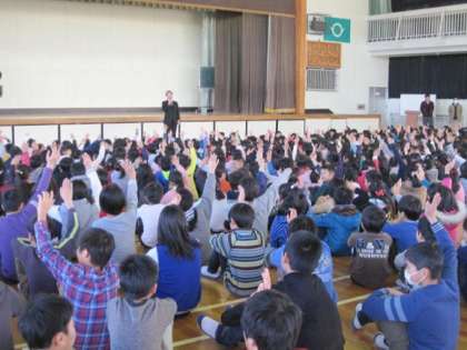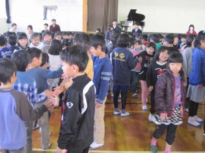 また朝礼の後には児童委員会の進行で全校児童でハイタッチをして、さわやかな1日が始まりました。今年度も早いもので残り約3ヶ月となりましたが、児童のみなさんにはいい思い出を作るとともに、次の学年へ進むための準備の期間として、しっかりした学校生活を送ってほしいと思います。