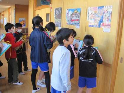 1月15日の3校時に5年生の図工の授業で鑑賞を行いました。今回は夏休み中に提出され、コンクールで入賞した作品のよいところを見つけ、感想とともにまとめました。