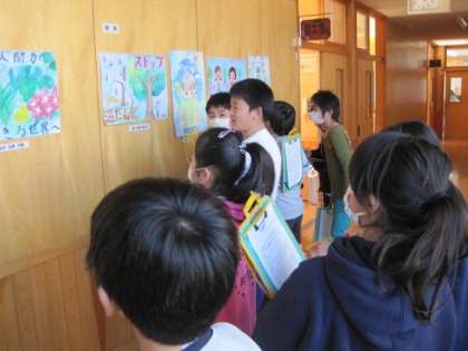 さすがに学校代表として出品され、入賞した作品ということで、どれもとても上手で、児童は間近にみて、細かい部分の丁寧さに驚きの声を上げていました。
