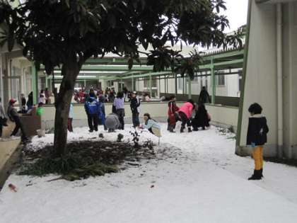 驚いたことに休み時間が終わる頃には再び降り始めてきました。おかげで昼休みも雪遊びが楽しめそうですが、下校する頃の天気が少し心配です。