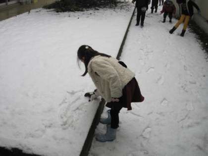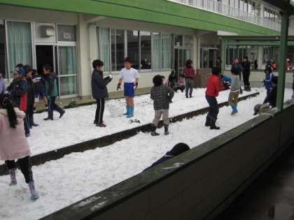 1月20日の20分休みの様子です。朝から再び雪が降り始め、いったんやんだので児童は元気に雪遊びを楽しんでいました。