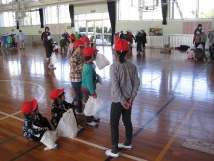 今週、1年生は2年生が生活科の時間に作ってくれた遊びランドに招待してもらいました。2年生は招待状を用意したり、遊ぶおもちゃを作ったりと準備をとても頑張ってくれました。遊びはボーリングや輪投げ、モグラたたきなどたくさんあり、1年生はたくさん遊ばせてもらいました。遊ぶおもちゃはすべてダンボールやペットボトルで作られていて、「2年生ってすごいなー、こんなのが作れるんだ」と感じたようでした。しっかりと遊び方の説明をし、よくわからない1年生に丁寧に教えている2年生がたくましく、立派に見えました。1年生も「来年は自分たちが遊びランドをやるんだ!」と張り切っていました。