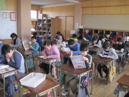 3月8日の朝は読書の時間でした。5年生のクラスでは小説、歴史など自分の興味のある本を熱心に読んでいました。先日、図書室から古くなった本を届けてもらったので、学級文庫も増え、じっくり選ぶ子もいました。