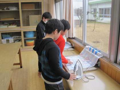 もう完成している子は自主学習に取り組み、ミシンで縫う子やエプロンにアイロンをかける子たちは完成に向けてやるべきことをがんばっていました。