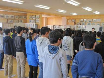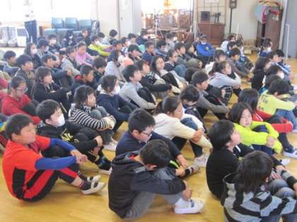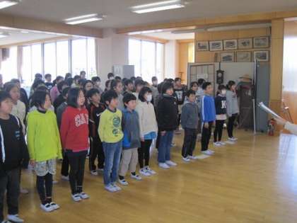3月15日の6校時、5年生が卒業式のお別れの言葉の練習をしました。今回が学年全体の初めての練習ということで、最初に学年主任の先生から卒業式に臨む心構えについて話がありました。
