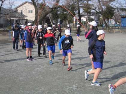 今日も準備体操をした後、少し練習をして、5分間の本番に臨みました。どのクラスもこれまで練習してきた成果を発揮し、回す人と跳ぶ子が一体となり、リズムよく跳ぶことができました。1年生には400回以上跳べたクラスもあったそうで、来年はさらにすごい記録が期待できそうです。