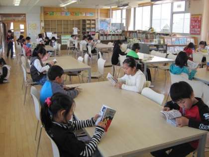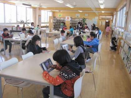 4月11日の4校時の図書室の様子です。5年生のクラスが静かに読書をしていました。今年度は全クラスが図書室利用の予定を決め、なるべくたくさん読書できるようにしました。