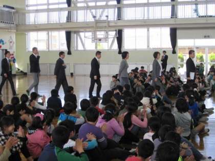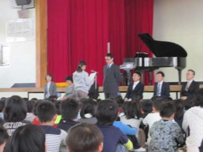 式では児童の代表からお一人お一人にお手紙のプレゼントがあり、先生方からは玉村小の思い出や新しい学校の様子などをお話ししていただき、児童も真剣にそして楽しそうに聞き入っていました。