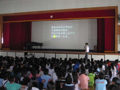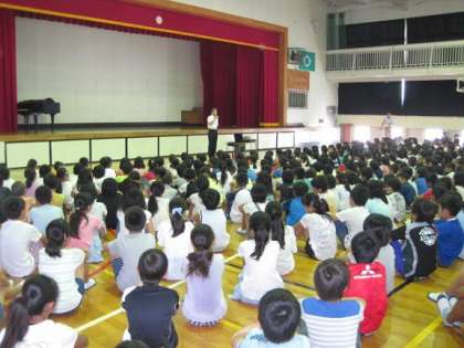 7月20日の朝、体育館で夏休み前の全校朝礼が行われました。
