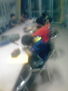 キャンプファイアも無事に終わり、部屋で手紙を書いています。一日目はたくさん思い出ができたようです。