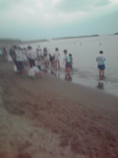 暗い海岸でかにさがしです。