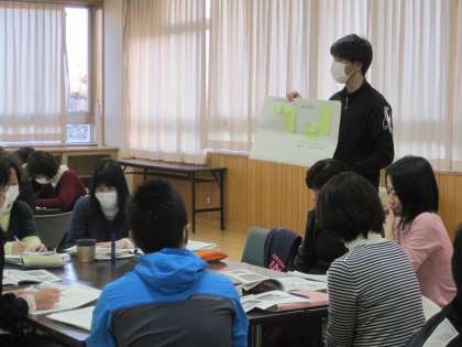 ■本校は、29〜30年度の2年間、県教委の学力向上推進モデル校として学力向上に取り組んでいます。1年目のまとめとして、県教委中部教育事務所の村井指導主事さんをお招きし、新学習指導要領が示す「主体的、対話的で、深い学び」についてお話ししていただきました。学びの姿をイメージすることは難しいところですが、玉村小の子ども達の姿で「主体的な学び」「対話的な学び」「深い学び」を明示して、次年度2年目の研究に繋げて行くことが大事だと。この研究指定で、玉小の子ども達の変容が子ども達自身も、保護者の皆さんも、地域の皆さんも、そして本校教職員も実感できることを実現したいですね。